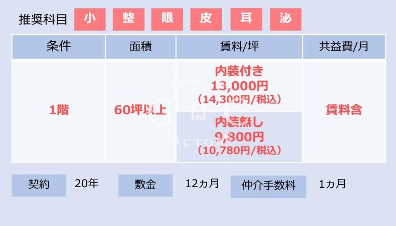 ※このサイトに記載がある医院開業物件の賃貸条件は、