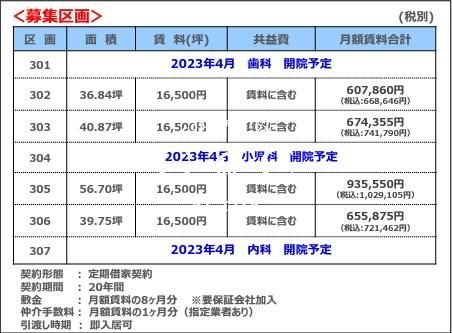 ※このサイトに記載がある医院開業物件の賃貸条件は、